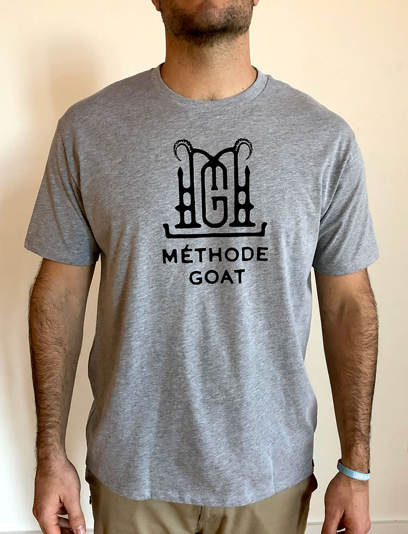 Grey shirts, front print “Methode Goat” with logo